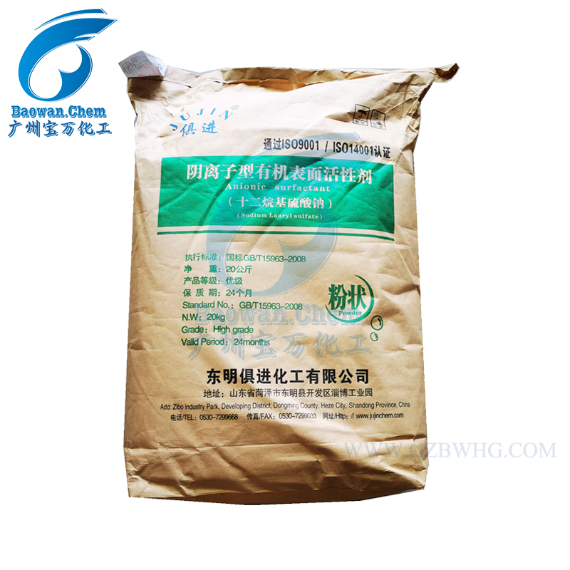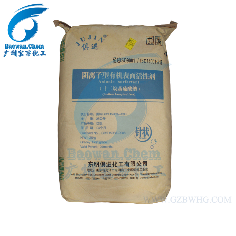 十二烷基硫酸鈉十二烷基硫酸鈉,白色或淡黃色粉狀,溶于水,對堿和硬水不敏感。具有去污、乳化和優異的發泡力。是一種對人體微毒的陰離子表面活性劑。其生物降解度>90%。用途:用作乳化劑、滅火劑、發