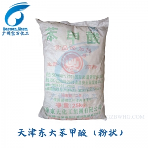 苯甲酸可以用作果汁飲料的定香劑。可作為膏香用入薰香香精。還可用于巧克力、檸檬、橘子、子漿果、堅果、蜜餞型等食用香精中。煙用香精中亦常用之。因苯甲酸的溶解度小,使用時須經充分攪拌,或溶于少量熱水或乙醇。在清涼飲料用的濃縮果汁中使用時,因苯甲酸易隨水蒸氣揮發,故常用其鈉鹽。化工中間體