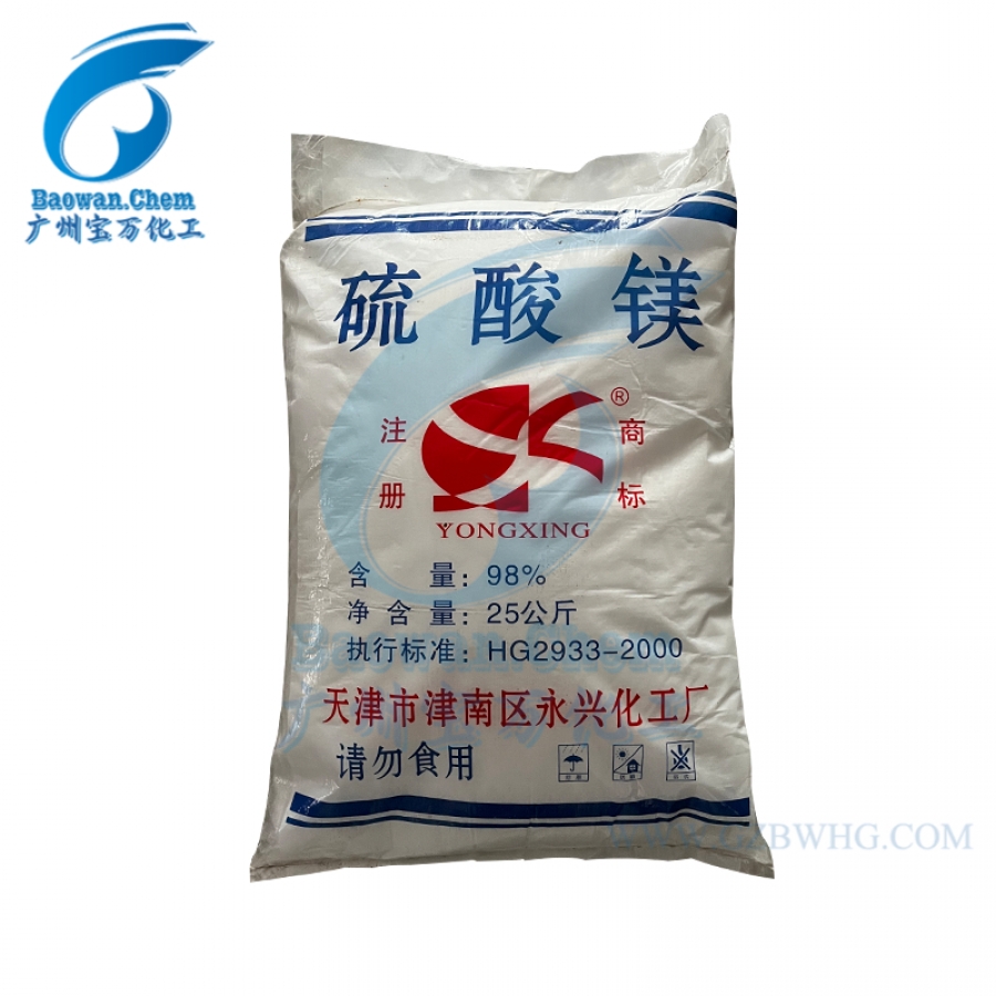 以氧化鎂、氫氧化鎂、碳酸鎂、菱苦土等為原料加硫酸分解或中和而得。也有以生產氯化鉀副產為原料,與制溴后含鎂母液按比例混合,冷卻結晶分離得粗硫酸鎂,再加熱過濾、除雜、冷卻結晶得工業硫酸鎂。還可用苦鹵加熱濃縮、結晶分離而得或氧化鎂及石膏水懸浮液碳化制得。??有關化學方程式: