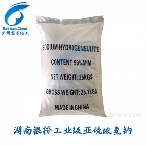 亞硫酸氫鈉,白色結晶性粉末。有二氧化硫的氣味,具不愉快味。暴露空氣中失去部分二氧化硫,同時氧化成硫酸鹽。溶于3.5份冷水、2份沸水、約70份乙醇,其水溶液呈酸性。