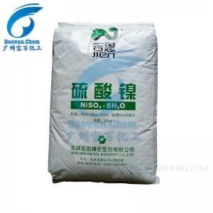低于31.5℃結晶為七水硫酸鎳,七水物為綠色透明結晶體,味甜而澀,稍易風化,相對密度1.948。熔點98~100℃。103℃時失去6個結晶水。溶于水和乙醇,極易潮解。硫酸鎳接觸塵沫及有機物,有時能引起燃燒或爆炸。有毒,空氣中最高容許濃度0.5mg/m3。