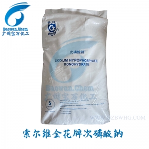水溶液呈中性,在100℃的水中溶解度為667g/100g水。易潮解。在干燥狀態下保存時較為穩定,加熱超過200℃時則迅速分解,放出可自燃的有毒磷化氫。遇強熱時會爆炸,與氯酸鉀或其他氧化劑相混合會爆炸。次磷酸鈉為強還原劑,可將金、銀、汞、鎳、鉻、鈷等的鹽還原成金屬狀態。在常壓下,加熱蒸發次磷酸鈉溶液會發生爆炸,故蒸發應在減壓下進行。
