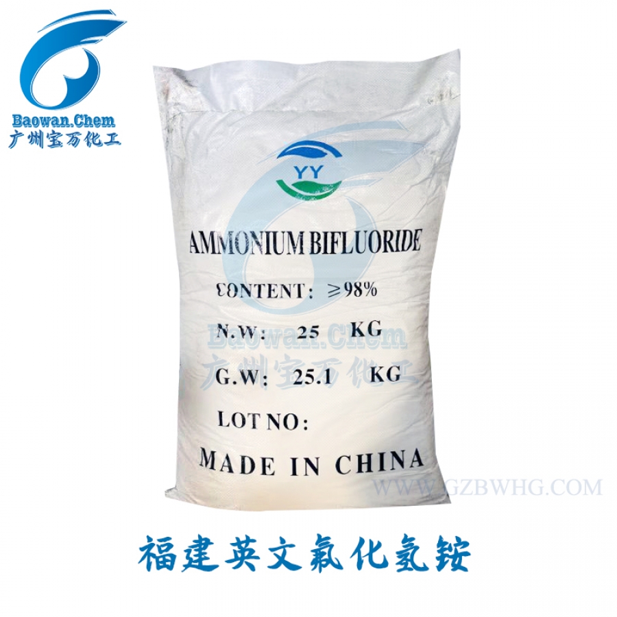 氟化氫銨是一種具有腐蝕性的化學物質,遇潮、水分解有毒氟化物, 氮氧化物和氨氣體。溶于水為弱酸,可以溶解玻璃,微溶于醇,極易溶于冷水,水溶液呈強酸性,在較高溫度下能升華,能腐蝕玻璃,對皮膚有腐蝕性,有毒。