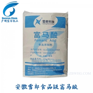 在食(shi)品(pin)中(zhong)主要用(yong)于肉制(zhi)品(pin)、魚肉制(zhi)品(pin)加工等。富(fu)馬(ma)(ma)酸(suan)可作為酸(suan)度調節劑(ji)、酸(suan)化劑(ji)、抗氧化助劑(ji)、腌(a)制(zhi)促進劑(ji)、香料使(shi)用(yong)。本(ben)品(pin)有強緩沖作用(yong),以保(bao)持水溶液在pH3.0左右,并對抑菌防(fang)霉有重要作用(yong),同時,它(ta)有澀味(wei),是酸(suan)味(wei)最強的固體酸(suan)之一,吸收(shou)率低,有助于延長粉末制(zhi)品(pin)等的保(bao)存(cun)期。當(dang)富(fu)馬(ma)(ma)酸(suan)變(bian)為富(fu)馬(ma)(ma)酸(suan)鈉后,水溶性(xing)及風味(wei)均更好。