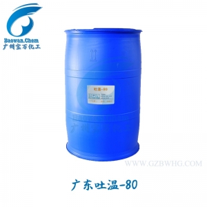 聚山梨酯-80,又名吐溫-80,是一種非離子型表面活性劑及乳化劑,化學式為C24H44O6(C2H4O)n。易溶于水,溶于乙醇、植物油、乙酸乙酯、甲醇、甲苯,不溶于礦物油。低溫時成膠狀,受熱后復原。有特臭,味微苦。