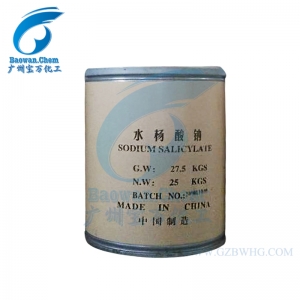 ?水楊酸鈉,英文名:Sodium salicylate,白色鱗片或粉末,無氣味,久露光線中變粉紅色。溶于水、甘油,不溶于醚、氯仿、苯等有機溶劑。遇火可燃。主要用于止痛藥和風濕藥,也用作有機合成。可由水楊酸用堿中和結晶而得。