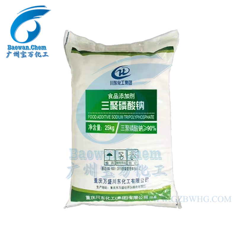 三聚磷酸鈉(sodium tripolyphosphate)分類代碼 GBl5.003,INS451(i)。化學結構:本品為一類無定形水溶性線狀聚磷酸鹽,兩端以Na2 PO4終止,化學式Na5P3 O
