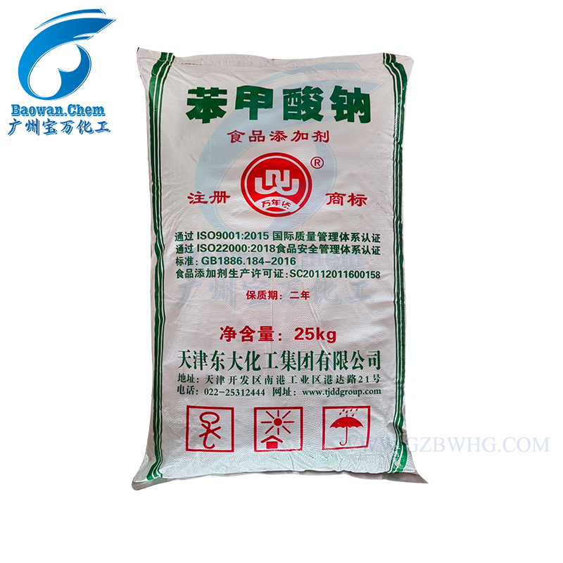 苯甲酸鈉?苯甲酸鈉(sodium benzoic)是一種白色顆粒或晶體粉末,無臭或微帶安息香氣味,味微甜,有收斂味。也稱安息香酸鈉,相對分子質量144.12。在空氣中穩定,易溶于水,其水溶液