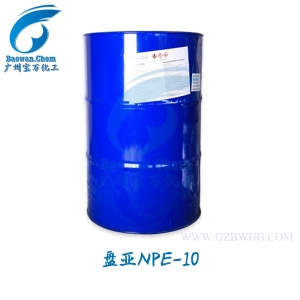 - 壬基酚聚氧乙烯醚為以壬基酚和環氧乙烷在催化劑作用下縮合反應的非離子表面活性劑。有各種不同的親水親油平衡值(HLB value).本品在洗滌劑/印染/化工有廣泛的用途。本品有良好的滲透/乳化/分散/抗酸/抗堿/抗硬水/抗還原/抗氧化能力。