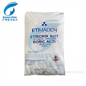 硼酸也是(shi)生產其他硼化物的基本原料(liao)之一,由它生產的硼化合(he)物廣(guang)泛應用于國防及(ji)其他工業部門和(he)科(ke)研(yan)單位。;用作PH調(diao)節劑、抑菌防腐(fu)劑。??