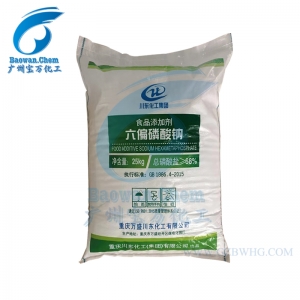 六偏磷酸鈉用于肉制品、魚肉腸、火腿等,能提高持水性,增高結著性,防止脂肪氧化;