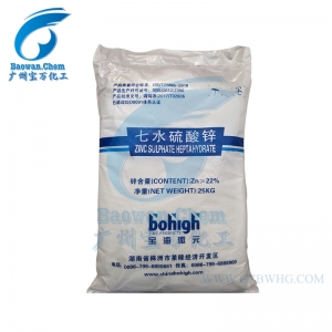 常溫下七水硫酸鋅為白色顆粒或粉末,正交晶體,有收斂性,是常用的收斂劑,在干空氣中會風化。加熱到 3 0 ℃失去一分子結晶水,100 ℃時失去六分子結晶水,280 ℃時失去七分子結晶水,767 ℃時分解成氧化鋅和三氧化硫 。能溶于水,微溶于乙醇和甘油。需要密閉保存。主要用作制造鋅鋇和其他鋅鹽的原料,也是粘膠纖維和維尼綸纖維等的重要輔助原料,還用作印染媒染劑、木材與皮革保存劑、骨膠澄清及保存劑、醫藥催吐劑和殺真菌劑,農業上用作微量元素肥料等。