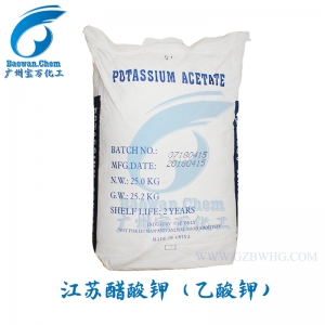 還可用作防冰物質,取代氯化鈣和氯化鎂之類的氯化物。它對土壤的侵蝕作用和腐蝕性更小,尤其適用于機場跑道除冰,但價格較昂貴。 食品添加劑(防腐及控制酸度)。滅火器的組分。用在乙醇沉淀DNA中。 用于保存、固定生物組織,與甲醛連用。乙酸鉀可由氫氧化鉀或碳酸鉀與乙酸發生酸堿中和反應制備:2CH3COOH + K2CO3 → 2CH3COOK + CO2 + H2O。